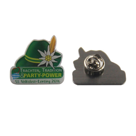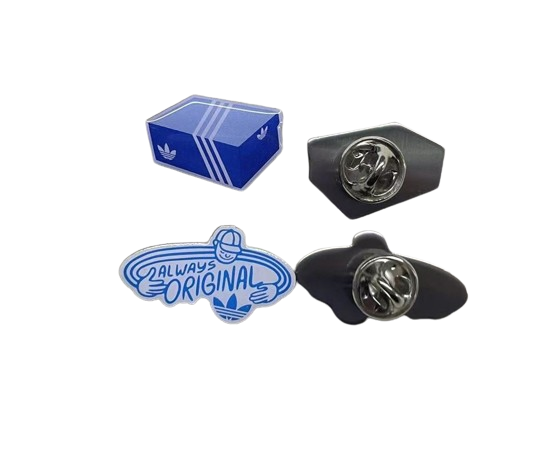 Pin Impreso 100% personalizado con silueta/troquel. Impresión full color con protección epoxi. Baño nickel sobre material acero inoxidable. Este proceso se recomienda para diseños con una gran cantidad de colores, detalles en degradee o detalles pequeños en el boceto.