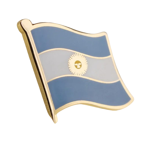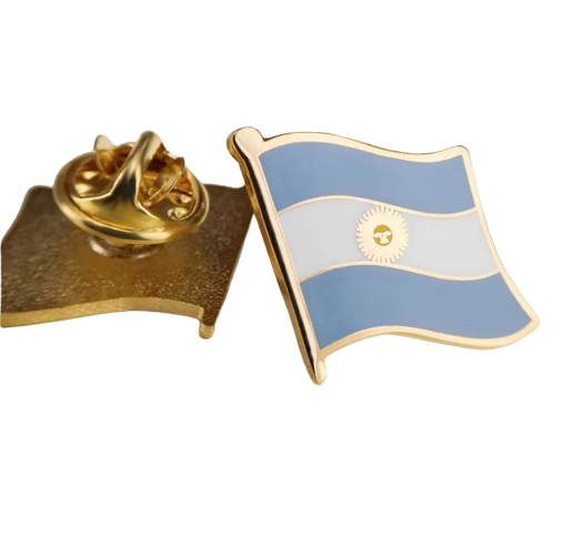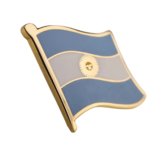 Pin Troquelado con Esmalte Duro con diseño de bandera de Argentina. Medida: 22MM x 19MM. Snap B/C. Ideal para fechas patrias. Stock permanente.
